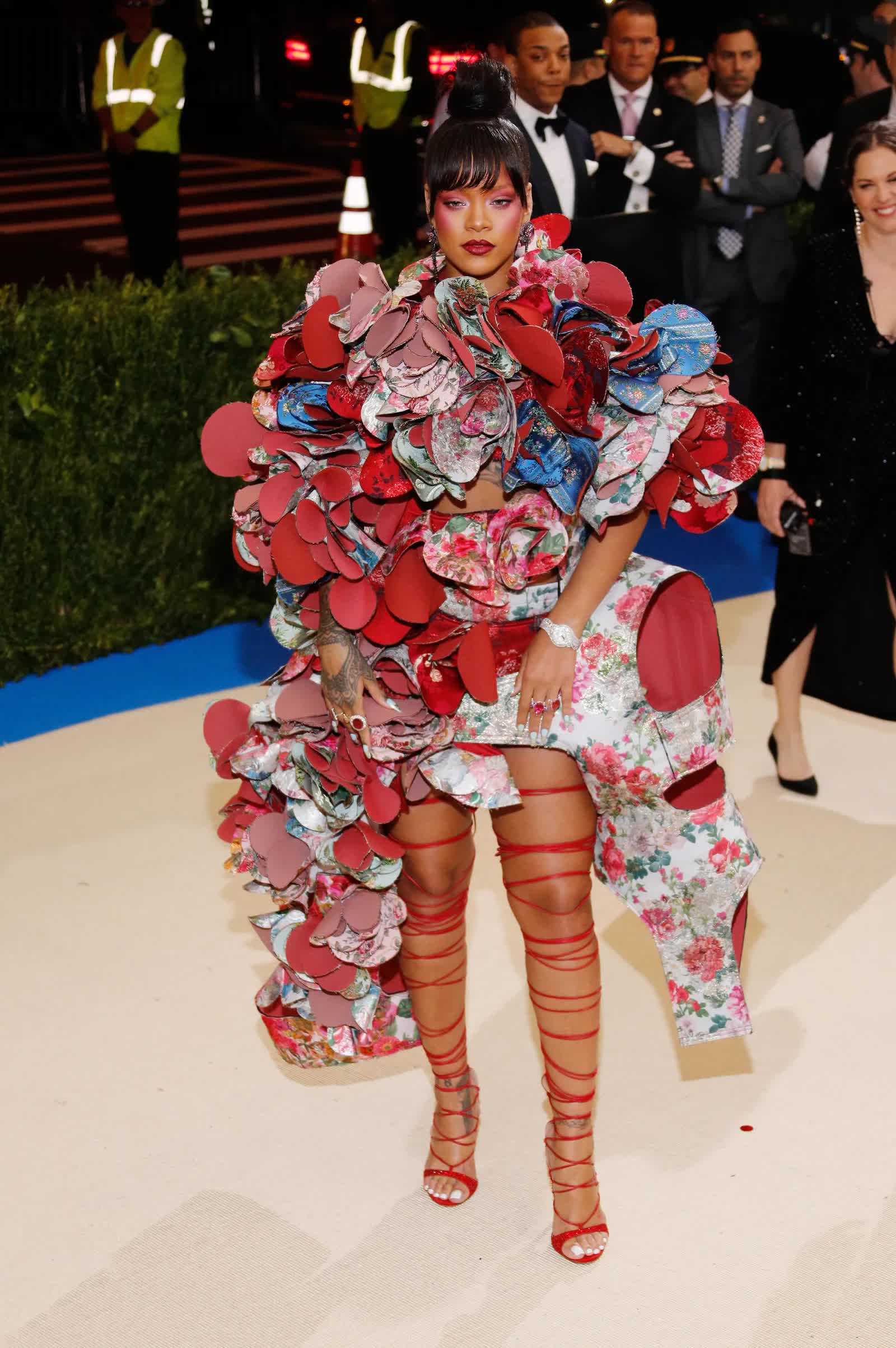 Как дань уважения модельеру Рианна явилась на вечере Met Gala в платье из коллекции CDG Fall/Winter 2016. Исполнительница повторила успех 2015 года и украсила красную дорожку цветочным нарядом, состоящим из трехмерных округлых деталей.