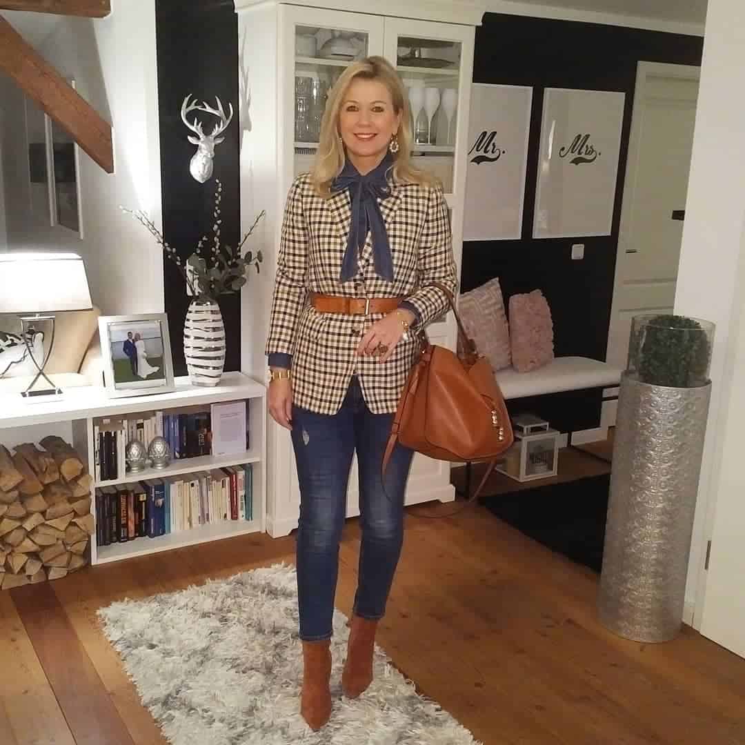 Стиль в одежде для женщин после 40 на каждый день может подразумевать наличие качественных часов, минималистичных пусетов, а также кашемирового или шелкового платка.