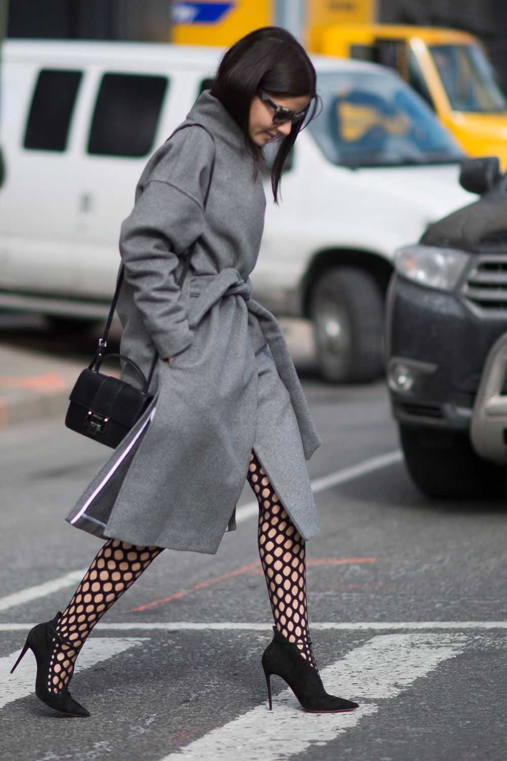 Обычные капроновые колготки плотностью до 40 den, как правило, носят только с закрытыми туфлями. Для сеточек есть негласное условие – туфли всегда должны быть на каблуке, пусть даже небольшом.