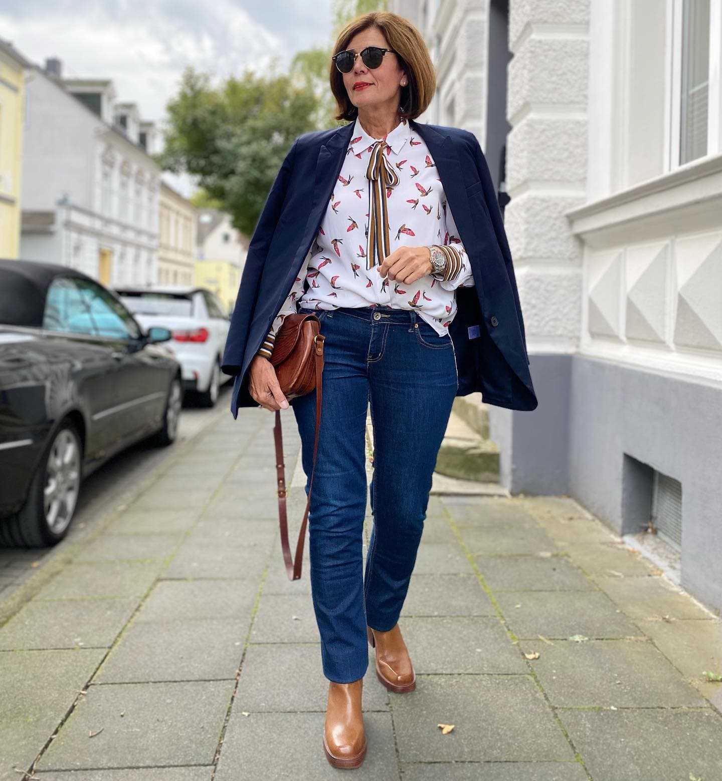 С джинсовыми брюками классического синего цвета будут отлично смотреться футболки, блузы и джемпера любых цветов и оттенков. А дизайнеры советуют не забывать о таких модных аксессуарах, как яркие ремни и сумки с бахромой. Такой вариант подойдет и для повседневной жизни и для не слишком официальных вечеринок.