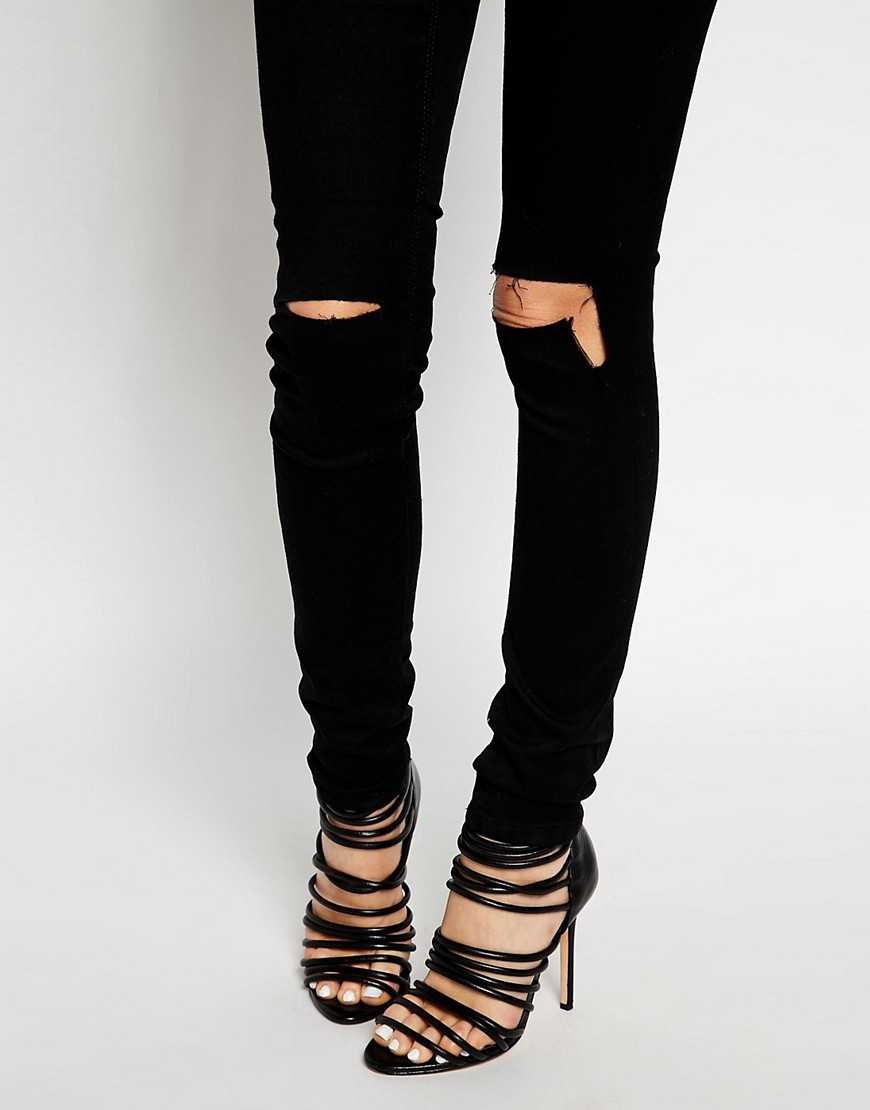 - Невозможно носить в холодное время года, так как прорези на коленях могут значительно навредить суставам. Поэтому подобные образы рекомендуется применять на весну/осень.