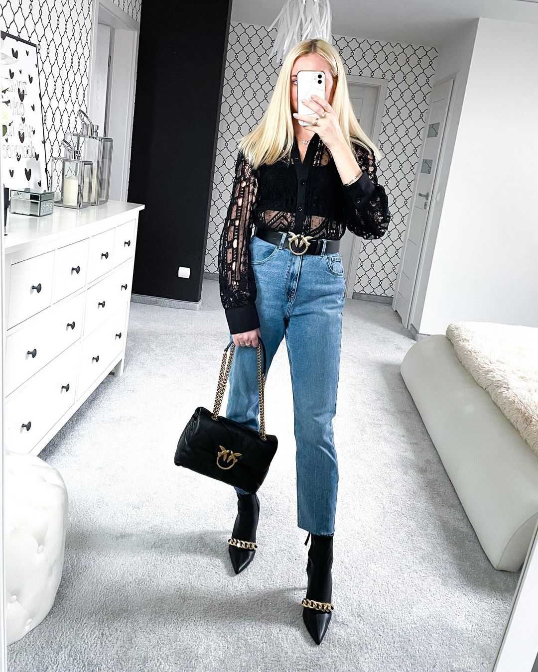 Еще один интересный вариант, как носить рубашку оверсайз с джинсами или брюками – создавать многослойный аутфит. Надень под низ топ, бра или футболку, а снизу любые любимые штаны.