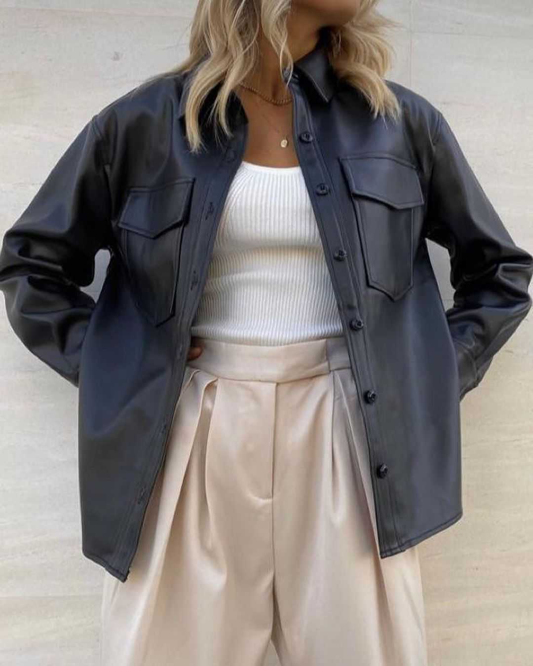 Кожаное плиссе может стать сдержанным и серьезным, если дополнить его рубашкой в офисном стиле – приталенной, классического кроя с длинным рукавом. В таком виде можно смело отправляться на работу. Ведь строгие правила делового дресс-кода соблюдены. А если офисную рубашку сменить на джинсовую, то получится стильный комплект для воскресной прогулки.