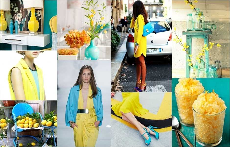 Сочетание голубого и желтого в одежде