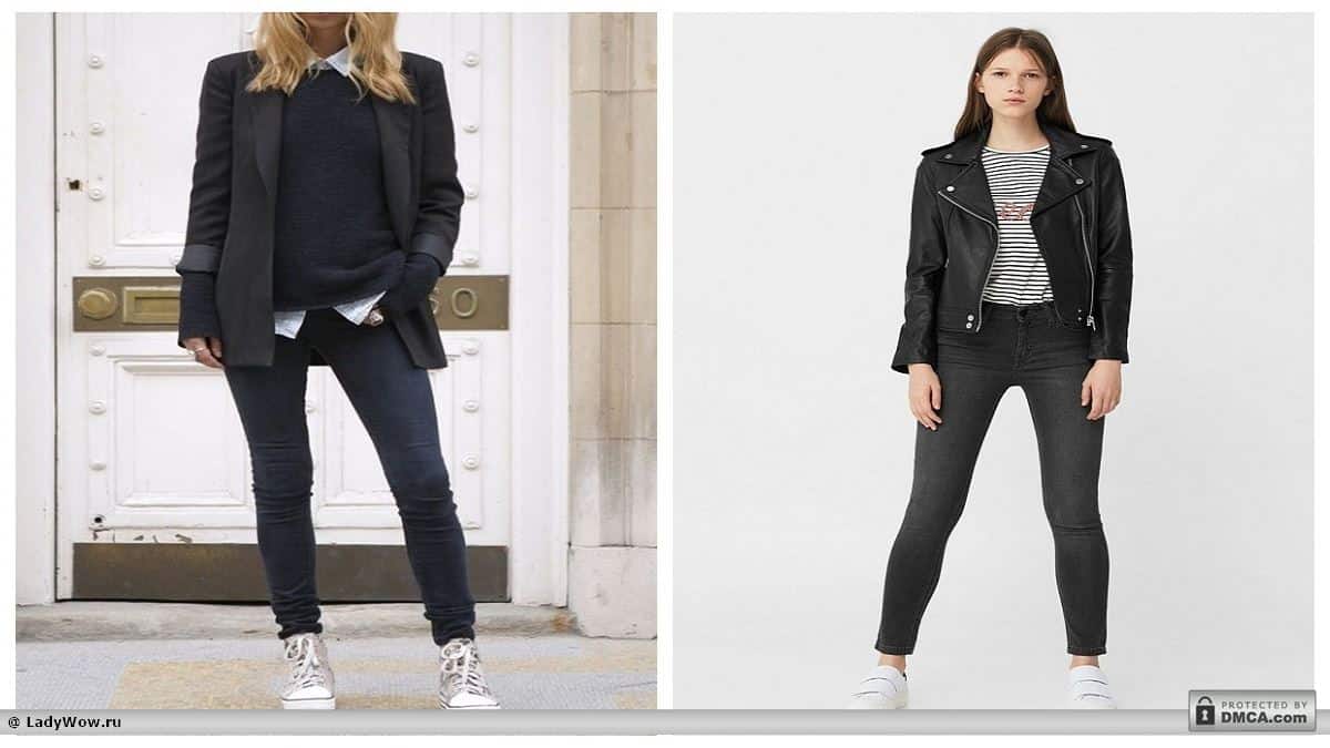 Кожаные куртка – дерзкая и стильная вещь. Наличие двух таких приковывающих взгляды вещей придает образу хулиганистый оттенок