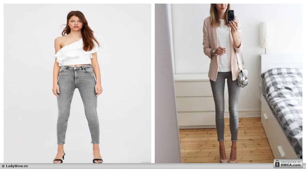 Серые джинсы представлены классическими оттенками.