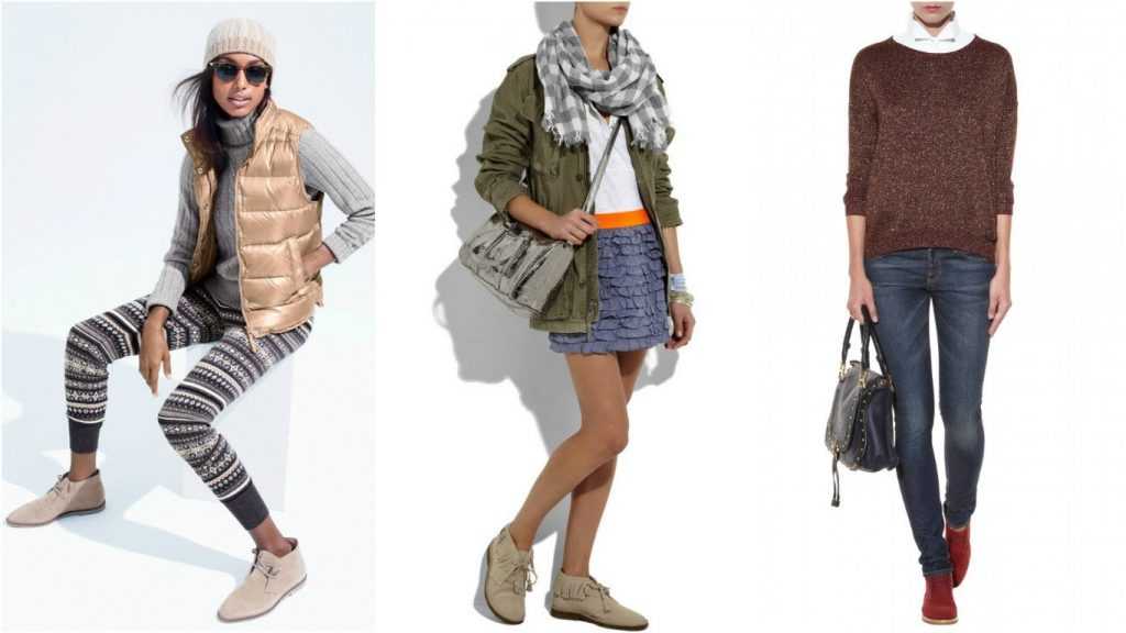 Среди коротких моделей, которые одинаково популярны и весной, и зимой, особое место занимает новомодная модель «чукка». Это модные женские ботинки из замши или кожи с минимумом дырочек под шнурки. Цветовая гамма самая разнообразная, но лидируют бежевый и синий оттенки. Ботинки хорошо сочетаются с укороченными брюками, шортами и мини-юбочками.
