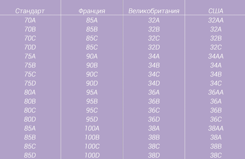 Как определить размер бюстгальтера по буквам? Таблица размеров бюстгальтеров