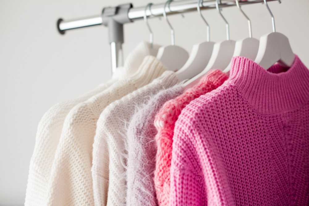 Хранить вязанные из шерсти вещи следует на полке, в сложенном состоянии. Не набивай вещи на эту полку плотно — так свитера могут помяться. Хранить шерсть на плечиках категорически запрещено! Так вещи быстро вытянутся, и вернуть им первоначальный вид уже не получится.