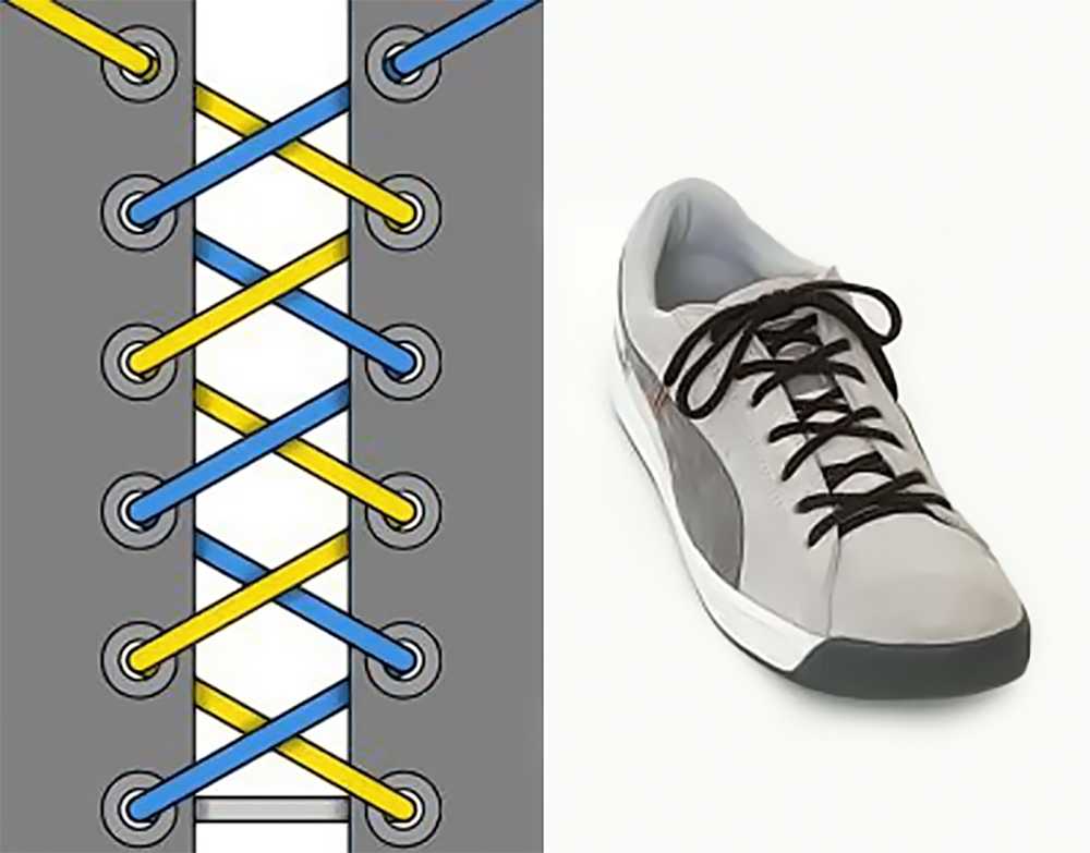 Классическую шнуровку знают практически все. Данный метод завязывания очень прост в исполнении.