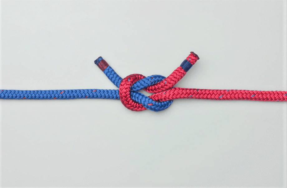 Для того чтобы спрятать узелки, разрешается применить рифовый узел.