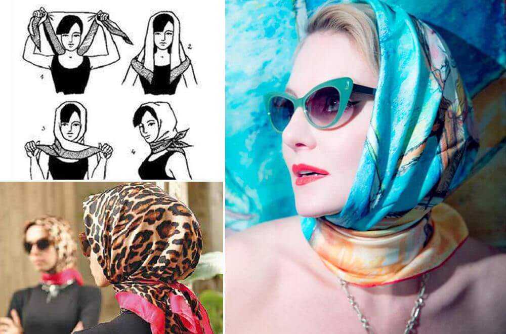 Сегодня можно встретить множество разнообразных способов завязывания платка на голове. Однако, этим летом самыми модными считаются схемы, которые представлены ниже.