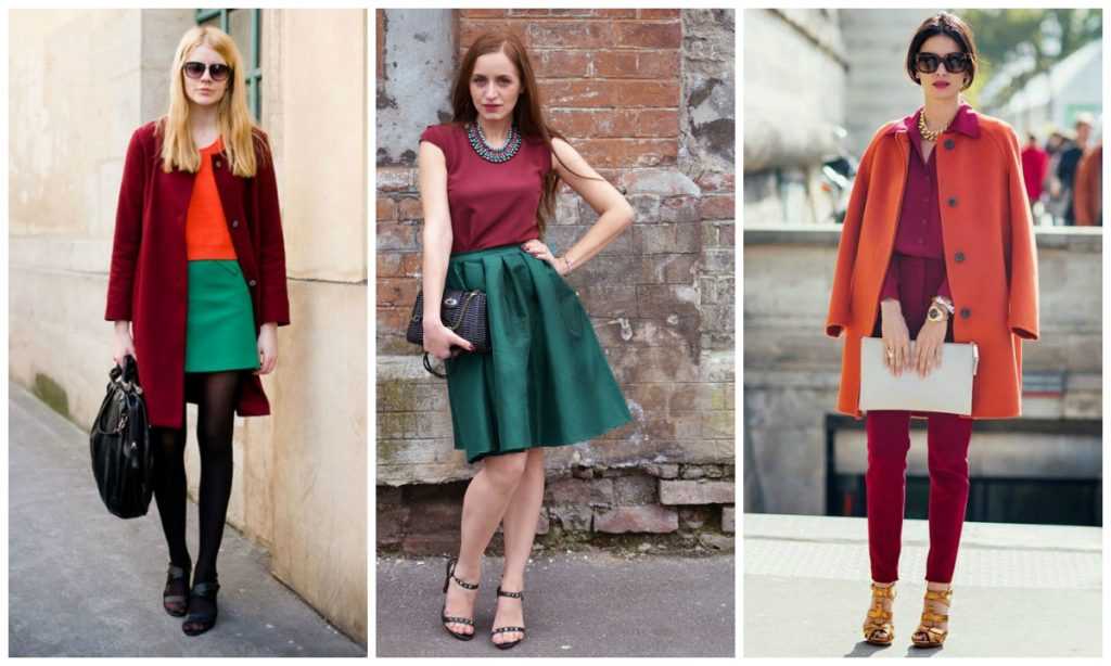 Бордовый цвет в повседневных луках.