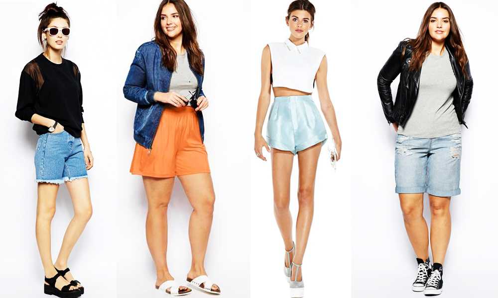 Девушки, обладающие пропорциональными параметрами тела, без чрезмерной худощавости или полноты, могут себе позволить самые смелые сочетания, модели, фактуры, расцветки. Им доступны и короткие шорты, и удлиненные, с заниженной линией талии и завышенной.