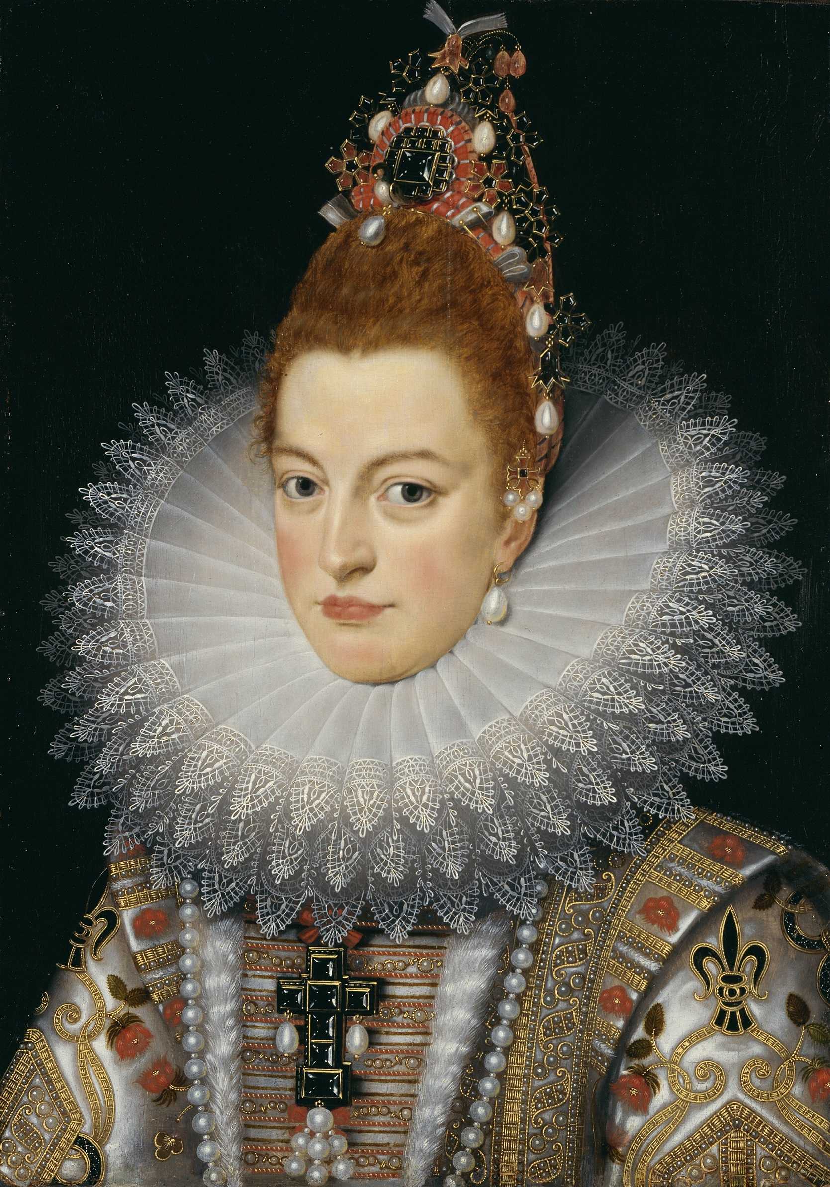 - Медичи или Раф. Высокий ворот, выполненный из плотного каркаса. Декорируется стразами, бисером, перьями, гипюром. Модель доходит до середины затылка. Встречается в карнавальных и сценических образах, на свадебных платьях.