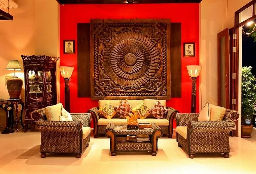 Красный цвет. Сочетание с красным тоном создают оригинальный, яркий, красочный дизайн. Данные оттенки часто используют в восточных стилистических направлениях.