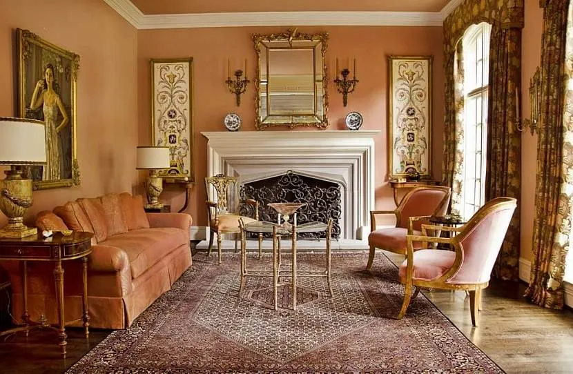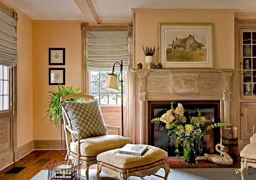 Персиково-бежевое сочетание в классической гостинойИсточник praktica-rs.ru