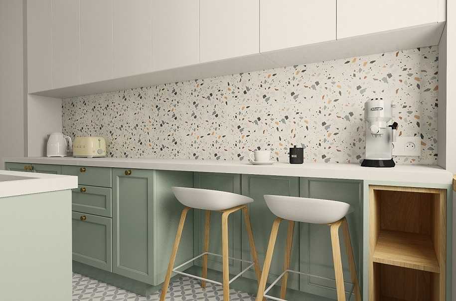 Выбирая обои для кухни, решите, в какой части комнаты их лучше расположить. Чтобы создать акцент, лучше всего использовать свободную стену (обычно около стола), чтобы установить фон — стену напротив большого окна. При правильном расположении акцентов в таком дизайне оттенок мяты перечной поможет освежить интерьер, пробудить аппетит и подчеркнуть атмосферу весны или моря.
