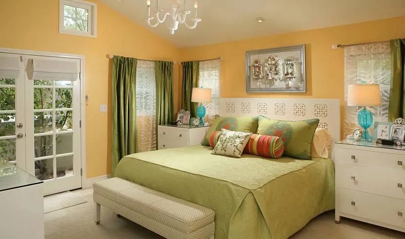Зеленый цвет. Холодные и теплые зеленые оттенки позволяют создать завершенный интерьер помещения. Спальня в теплых персиково-зеленых тонах выглядит мягкой.