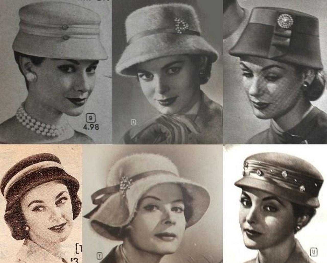 Законодатели моды 50-х годов не обошли вниманием и головные уборы. В легкие летние ансамбли включали изысканные широкополые шляпы, а с повседневными моделями принято было носить миниатюрные шляпки-таблетки, часто украшенные короткой вуалью