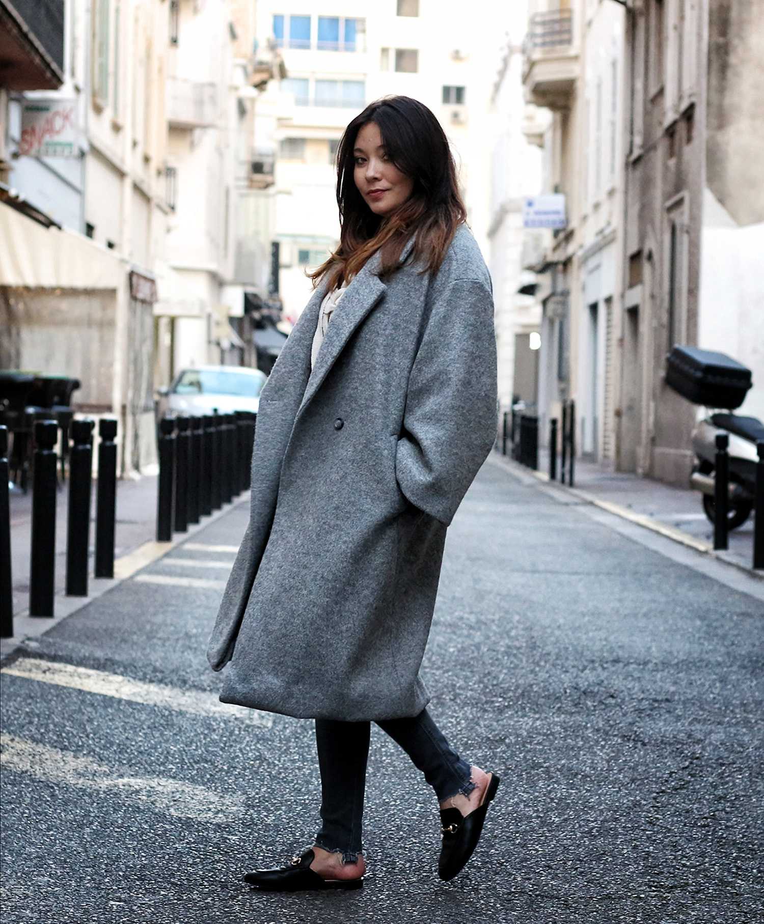 Оверсайз отлично смотрится с любой обувью на плоском ходу, объемными шарфами — всем тем, что дает комфорт и удобство при использовании.