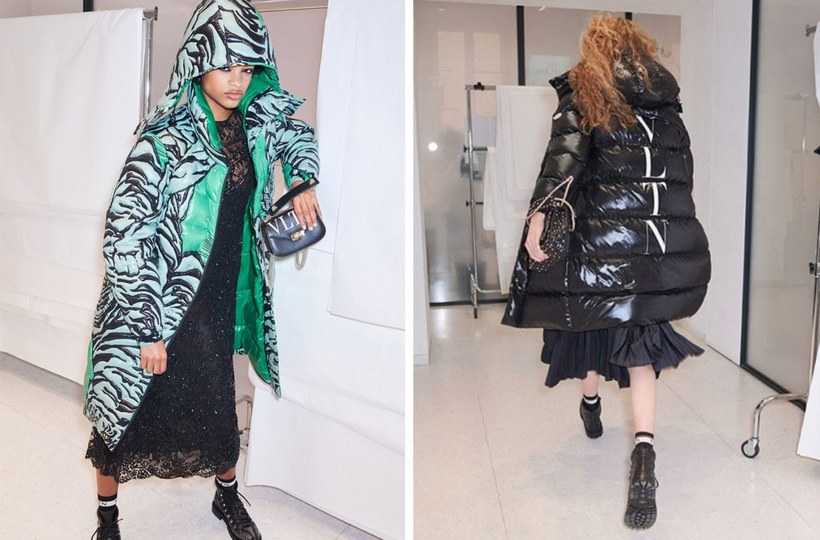 Удлиненный женский пуховик Valentino Moncler, созданный брендом совместно с Итальянским Модным домом и представленный на подиуме в Нью-Йорке, привлекает внимание оригинальным принтом в виде тигра