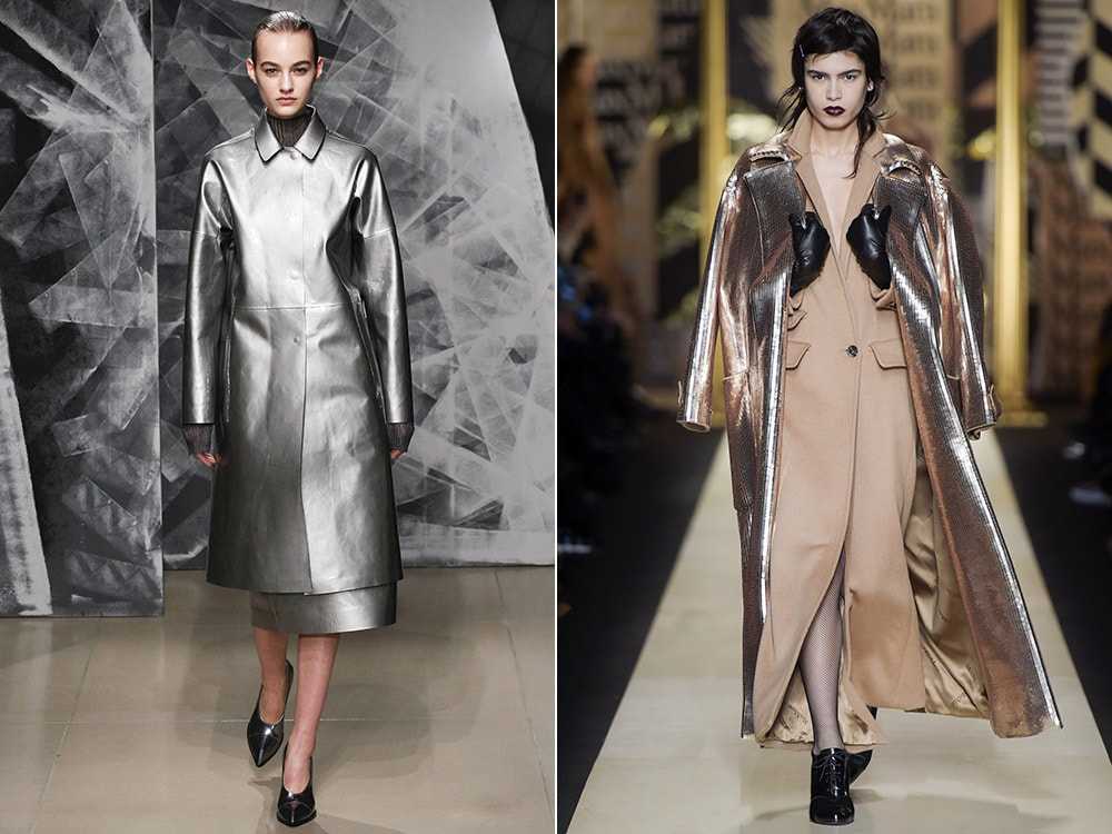 Всё больше мода тяготеет к чему-то эксцентричному с ноткой дерзкого гламура. Так, например, металлизированные ткани пальто будут, как никогда, популярными в новом сезоне. Более того, из ряда вечерних одежд такое пальто можно смело перевести в категорию модной вещи для создания повседневных луков.