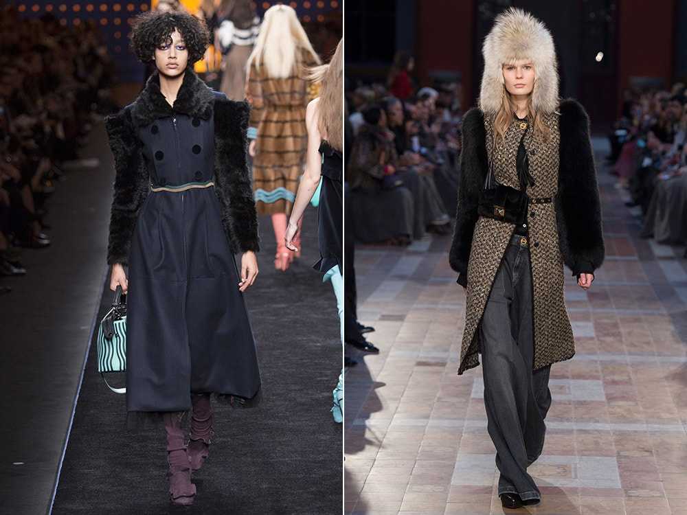 Пальто и полупальто для зимы декорируют меховыми воротниками, манжетами и другими меховыми деталями, которые занимают самые различные места на изделии.