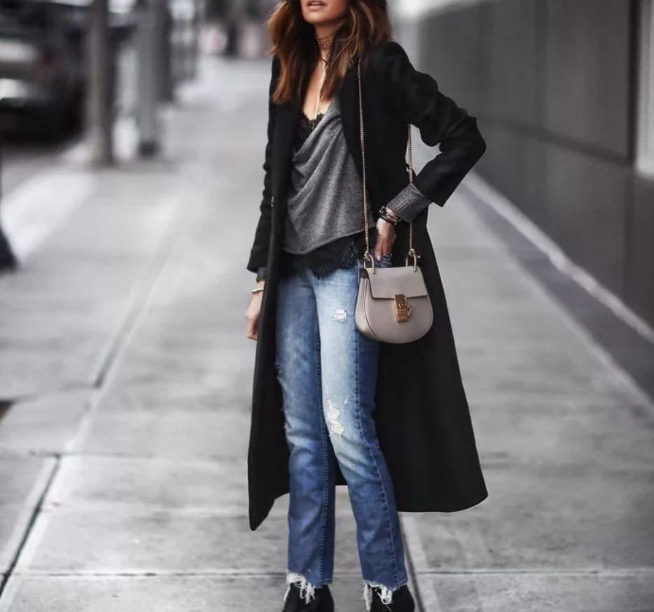 Женское пальто летучая мышь можно комбинировать с джинсами и брюками в свободном стиле. Однако при создании такого нестандартного и вызывающего образа стоит учитывать собственный возраст – пожалуй, подобные наряды лучше носить молодым девушкам, а не взрослым солидным дамам.