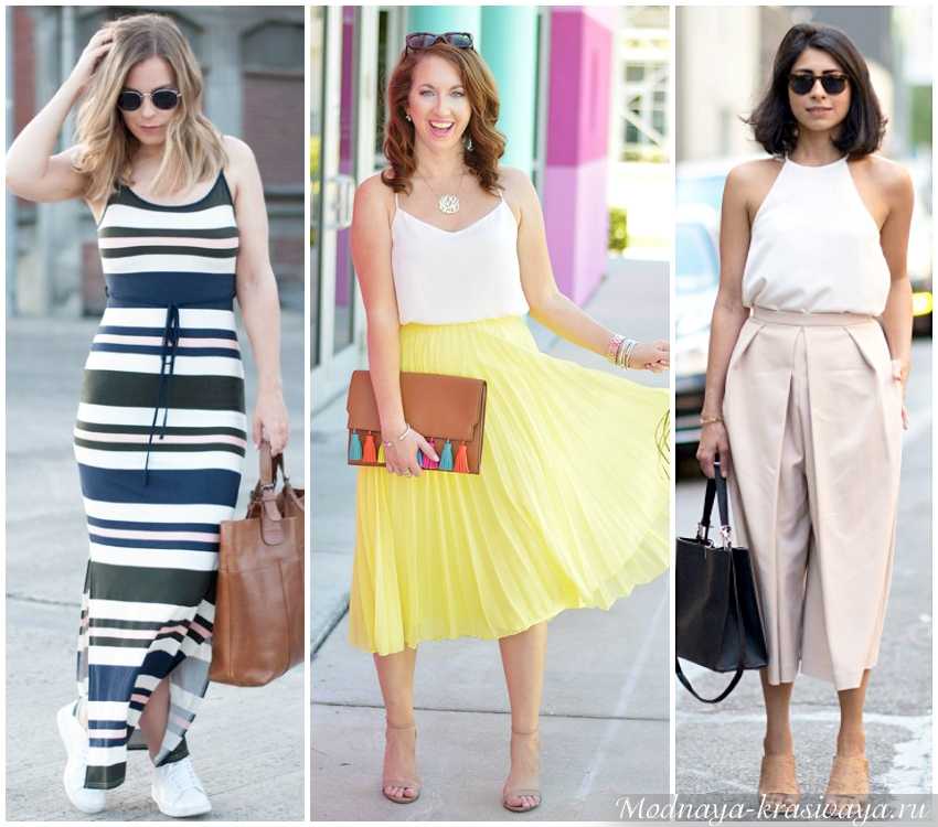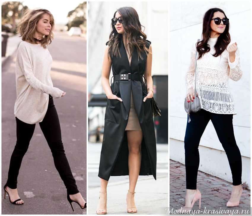 Все рисунки, яркие и светлые цвета располагаются в верхней части фигуры, внизу – темное, матовое, неброское. Хороший вариант – комбинированное платье с пестрым лифом и однотонной юбкой. Еще одна хитрость – брюки, совпадающие по цвету с обувью. Если надеваете юбку, желательно, чтобы туфли гармонировали с тоном кожи или колготок.