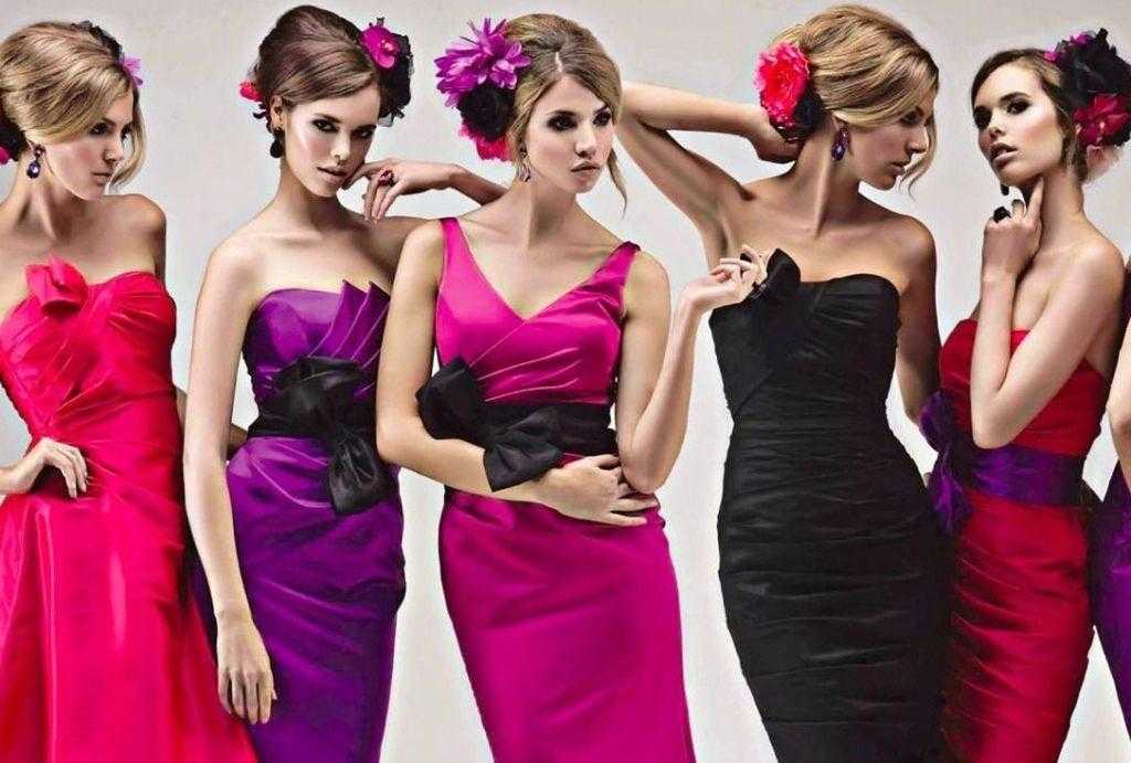 Дамам с неидеальными параметрами необходимо выбирать темные оттенки нарядов, придающие точеность и стройность женским образам. Платья, скрывающие недостатки фигуры, выполняются чаще всего в цветах: электрик, изумруд, бордо, пурпур, шоколад, фото подборка тому подтверждение.