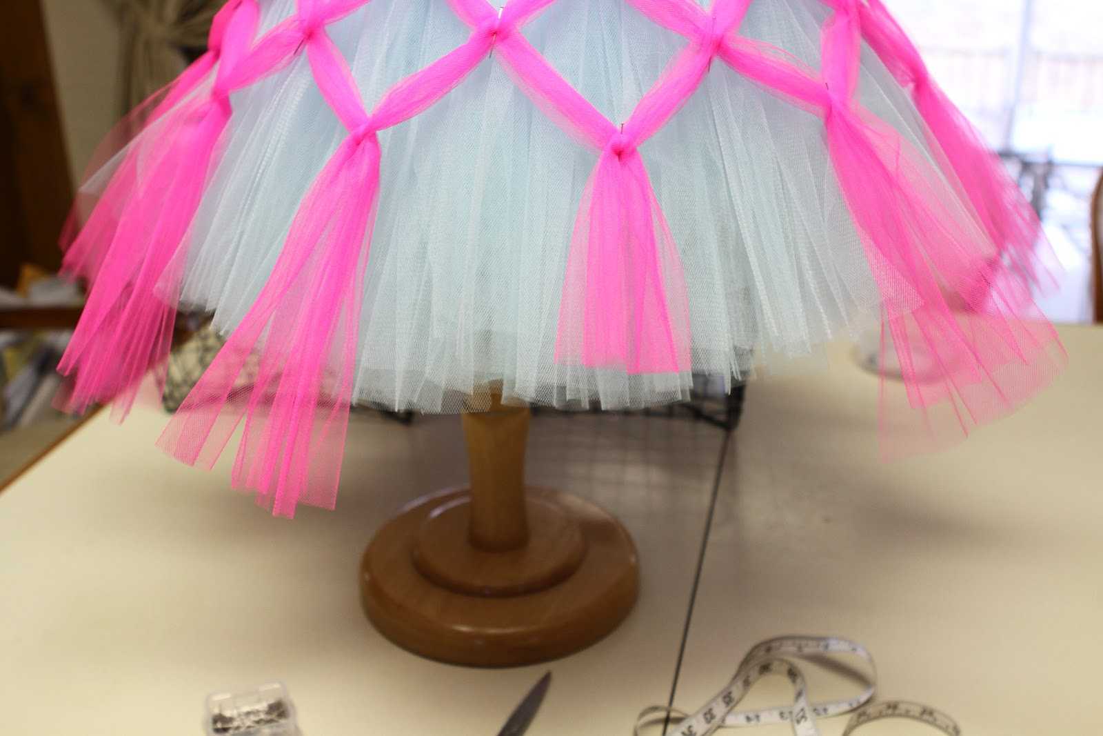 шаг 21. Готовую юбку шопен нужно оставить свисать, поэтому все слои фатина должны быть обрезаны на одном уровне.