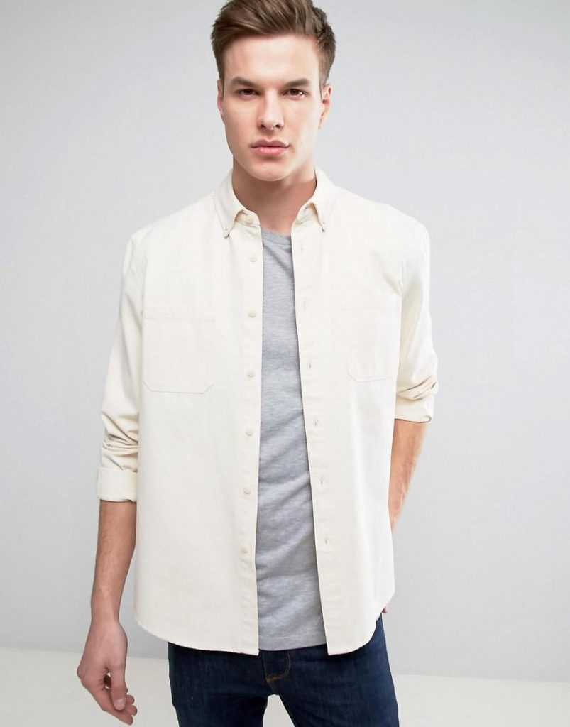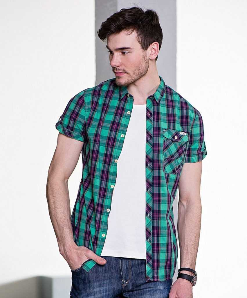 Рубашка с футболкой мужчине, довольно, повседневное сочетание элементов гардероба. Однако в таком образе можно пойти и на свидание, и на прогулку с друзьями. А также на работу или в учебное заведение, если там нет серьезного дресс-кода.