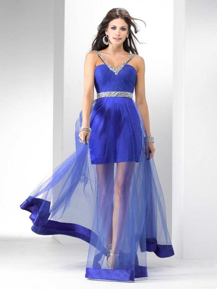 Для вечеринки прекрасно подойдут яркие синие наряды расшитые бисером, пайетками и другим декором. На синей основе такой декор будет выглядеть гораздо ярче и насыщеннее. Особенно обворожительно короткое синее платье будет выглядеть в закрытых помещениях с обилием софитом и приглушенного цвета.