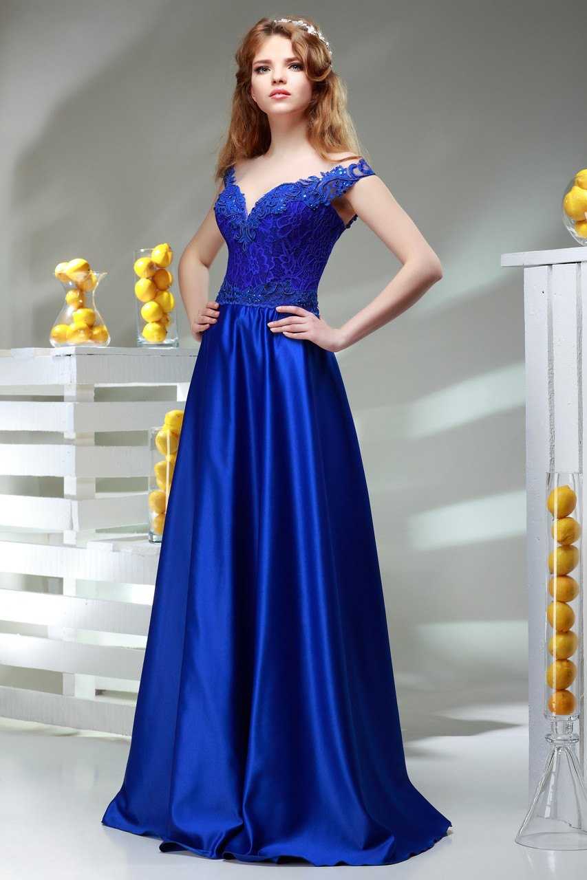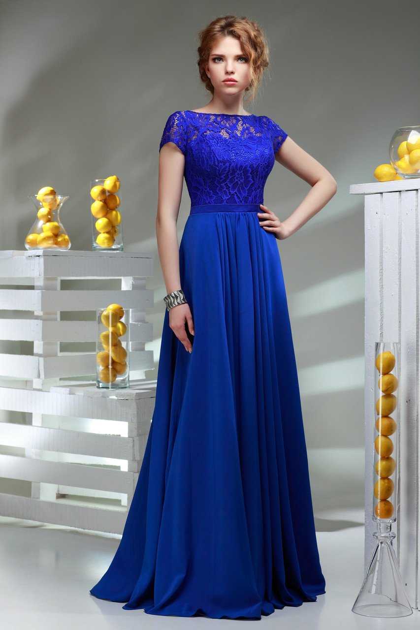Длинное. Синие платье длиной в пол сшитое из легкого шелка, шифона или тяжелого бархата станет поистине главной изюминкой вечернего образа. В основном, такие наряды характерны подкройной линией талии и несколько присобранным низом, который нередко декорируется еще и высоким боковым разрезом. А вот верхняя часть платья может быть обильно украшена кружевными вставками, вышивкой или орнаментами из страз.