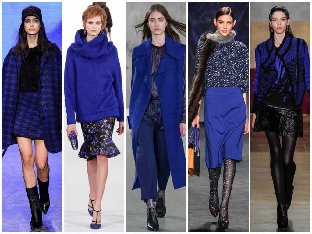 В холодное время года дополнением к кобальтовому наряду станет зелёный тренч или пальто. Весной девушки украшают изделие ремнями, надевают платье с красным поясом.