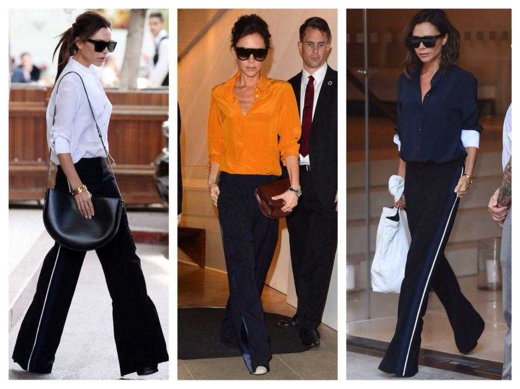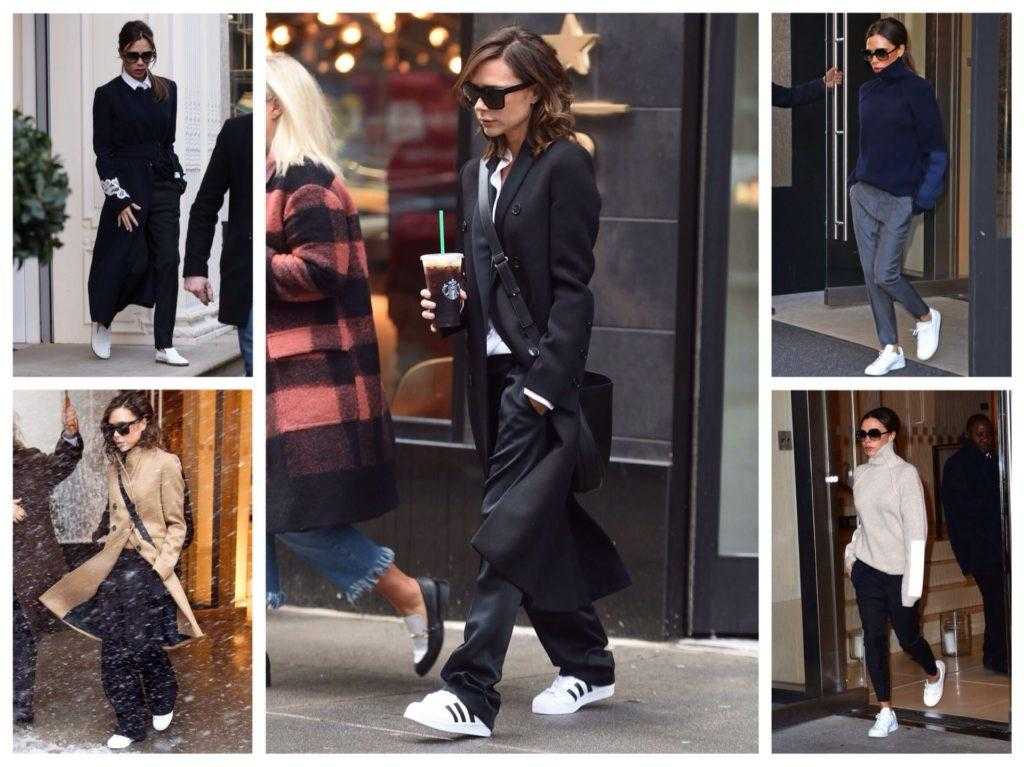Увидеть Викторию в спортивной одежде можно исключительно в спортзале, который она посещает ежедневно, или на пробежке. Невысокий рост и любовь к классике не позволяют ей носить кроссовки, футболки, леггинсы. Некоторые элементы спорта включает уличный стиль Виктории Бекхэм, но и в этом случае образы наполнены элегантностью. Если топ, то облегающий, если кроссовки, то яркие! В ее гардеробе замечены толстовки, спортивные бейсболки и черные брюки с лампасами. Последние, к слову, были подвергнуты критике из-за вездесущих папарацци, подловивших звезду на выходе из супермаркета.