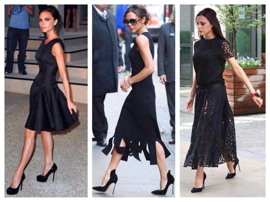Виктория Кэролайн Бекхэм (Victoria Caroline Beckham), в девичестве Адамс, начинала как певица в популярнейшей поп-группе Spice Girls в 1994 году. Тогда двадцатилетняя Вики была известна под именем Пош Спайс, что переводится «Шикарная Специя». Сценические наряды были под стать никнейму — броские, откровенные, обтягивающие и откровенно сексуальные. Но уже тогда ранний стиль Виктории Бэкхем отличало наличие большого количества нарядов классического черного цвета, причем смотрелись они на ней просто «posh», т.е. потрясающе. Поскольку обувь тоже была черной, Виктория разнообразила одежду красочными деталями: воротниками, манжетами, всевозможными многоярусными украшениями, воротниками и поясами. Этот прием сохранился в ее арсенале и по сей день. Она осталась верна и туфлям на очень высоком каблуке. Оказалось, что они не только подчеркивают сексуальность, но и гармонично дополняют классический стиль одежды.
