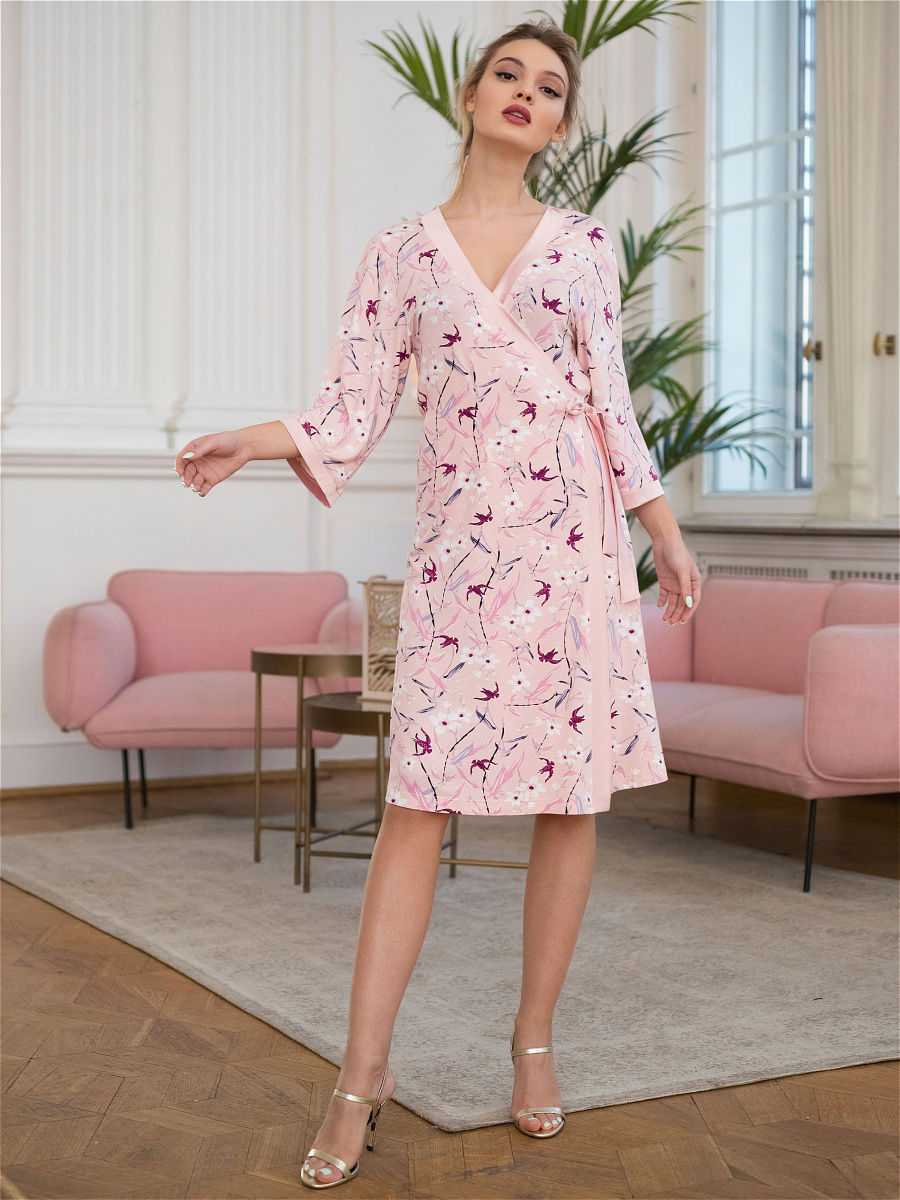Данная модель выполнена из стопроцентного хлопка и рассчитана на беременных и кормящих матерей. Большой выбор нежных расцветок с разными принтами: от романтического цветочного до забавного Микки Маусом. Халат без застежек, запахивается и фиксируется завязками, что очень удобно при кормлении или увеличении живота во время беременности. Средняя стоимость – 800 рублей.