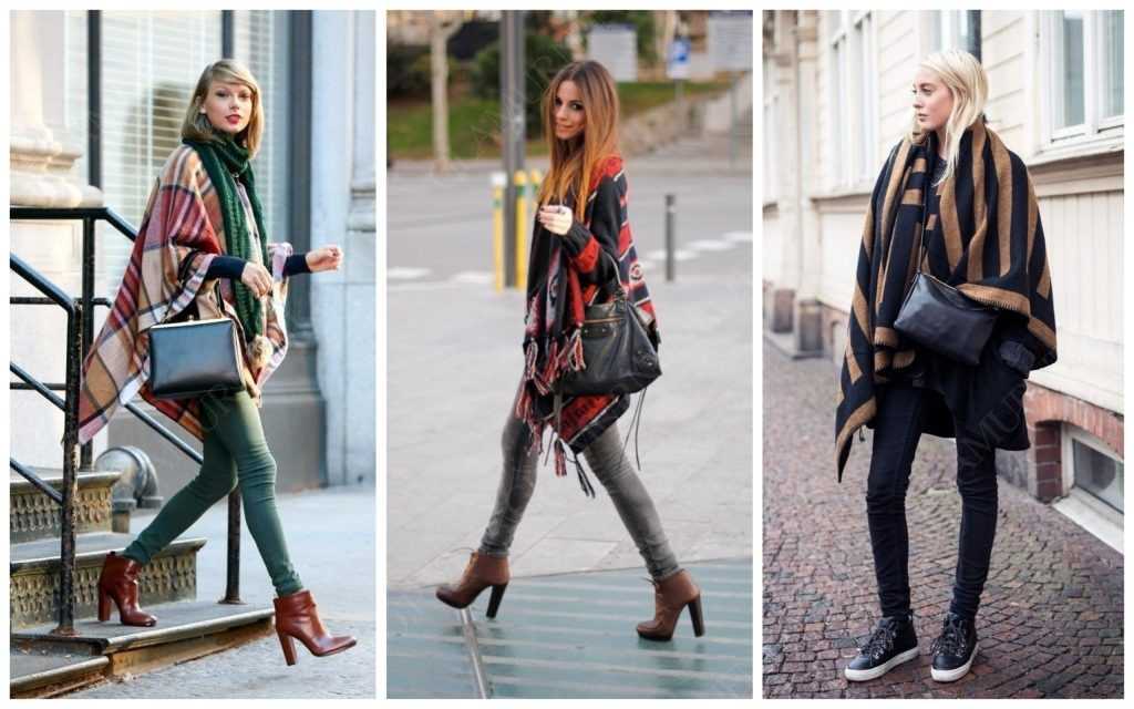 Примеры многослойности в одежде с цветным пончо