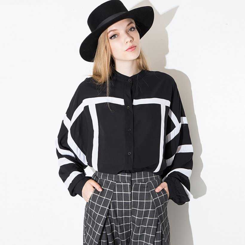 Очень нарядно выглядит стойка воротник на блузах пошитых из шелка. Так как данный вид ткани не предназначен для того, чтобы удерживать форму, лучше всего выкройку блузы делать не по частям, а целиком.