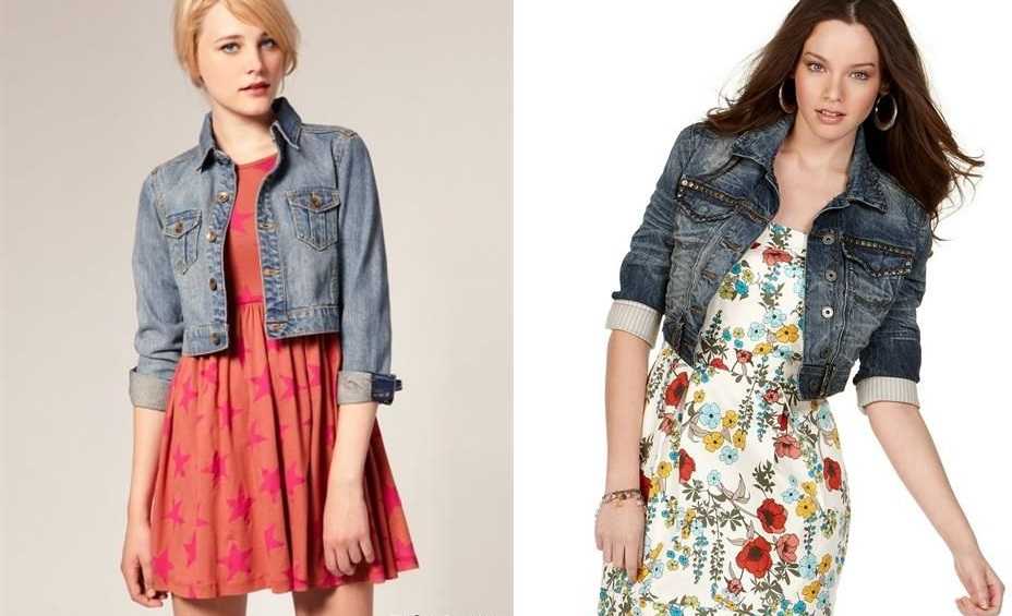 Девушкам с типом фигуры «ровная колона» также можно носить укороченный джинсовый жакет, надевать его рекомендуется с пышными юбками, в этом случае, визуально силуэт будет приближаться к идеальному. А вот с узкими брюками или юбкой при таком типе телосложения лучше не надевать.