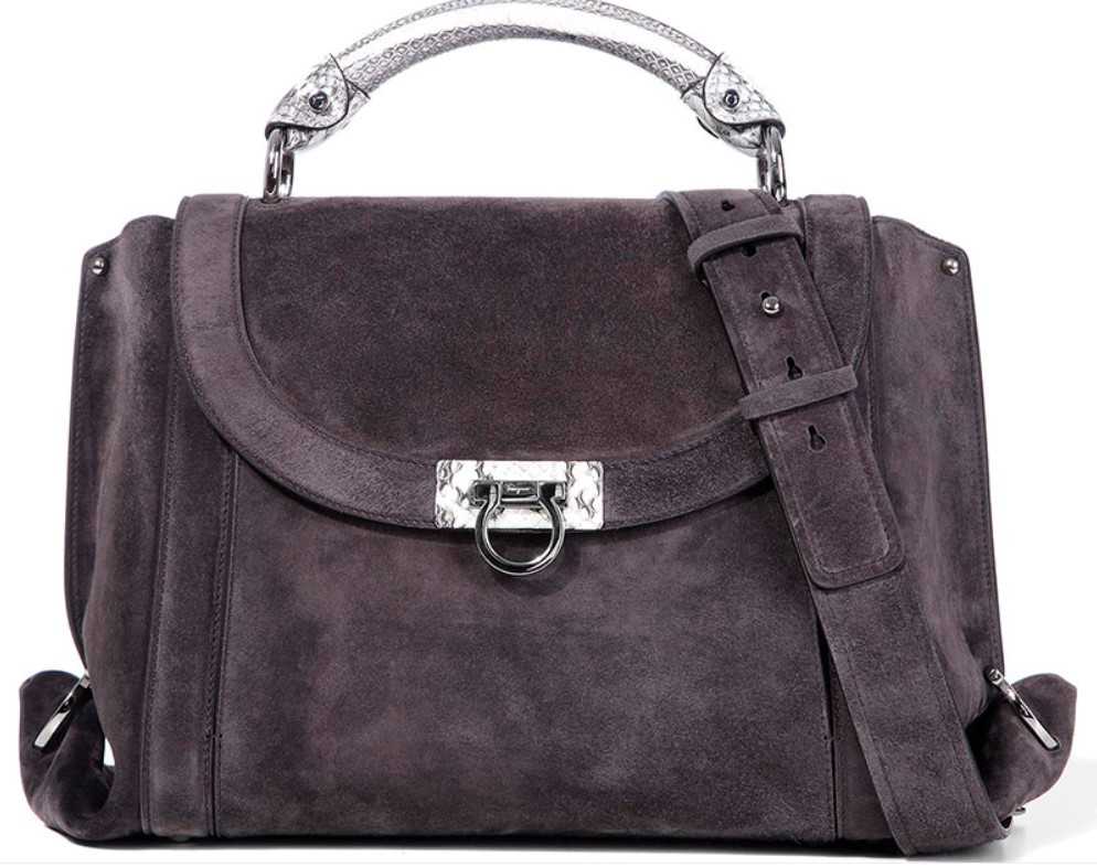 Дизайнеров также привлекает мягкая структура, благородный блеск замши. Часто в моделях сумок сочетают несколько видов материалов, например, на кожаном изделии делают вставки из нубука или текстиля. Лак встречается реже и в небольшом количестве, главным образом в отделке.