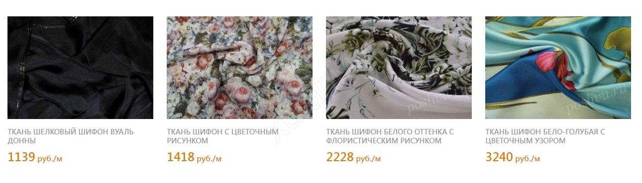 А теперь рассмотрим вопрос «Сколько стоит ткань шифон?». Для этого мы пересмотрели коммерчиеские сайты и сходили в магазин поблизости. И так, ткань шифон цена за метр составила от 130 до 3000 рублей.![]()
