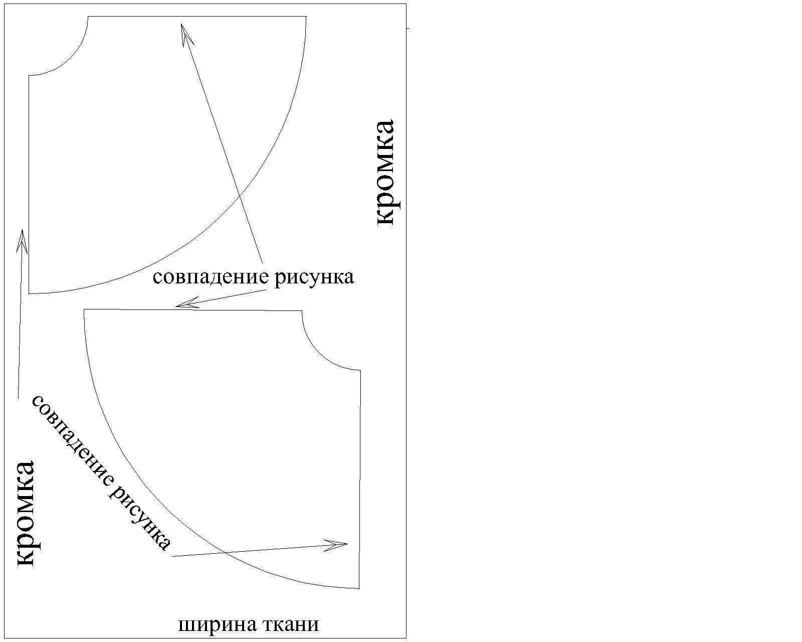 Чтобы не допустить ошибок, начинающей швее рекомендуем разложить ткань на столе или полу. Выполнять построения нужно на изнаночной стороне изделия. При расчётах вам потребуется центр, чтобы отложить из него окружности, радиус которых определили заранее. Вторую половину изделия строят аналогичным образом. Если у вас есть готовая выкройка, например, из журнала для любителей шитья, проверьте все размеры, и можно приступать к дальнейшей работе. Выполните раскладку на развороте полотна и выкроите детали.