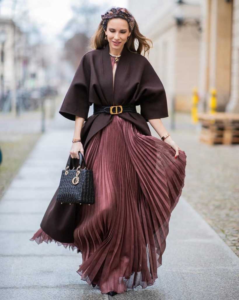 Юбка-макси является самой длинной из юбок и заканчивается на уровне щиколотки. Он может быть выполнен из самых разных тканей, от самых свободных до самых облегающих. Как правило, считается повседневной, но, в зависимости от модели, может вполне подойти для нарядного вечера. Хотя она очень универсальна, она больше подходит для высоких женщин.