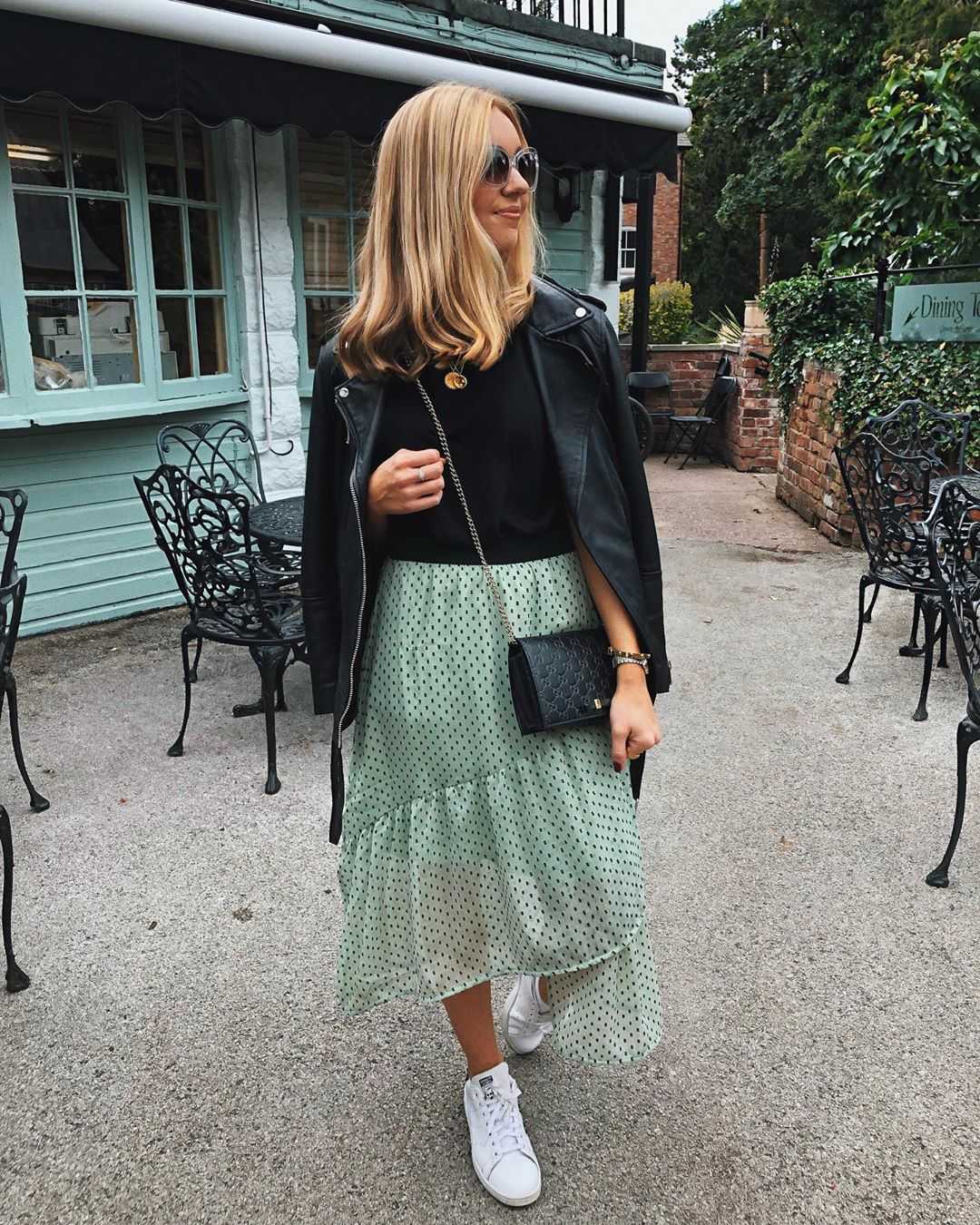На свидание можно надеть непрозрачную плиссированную юбку с кроп-топом и босоножками. А если хотите составить трендовый повседневный образ, то вместо босоножек обуйте кроссовки, а маленькую сумку замените удобным рюкзаком.