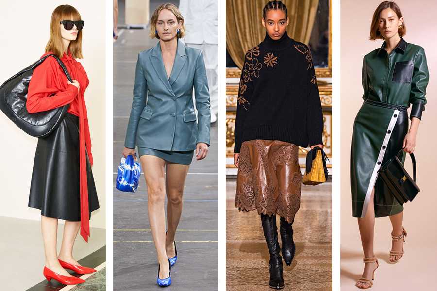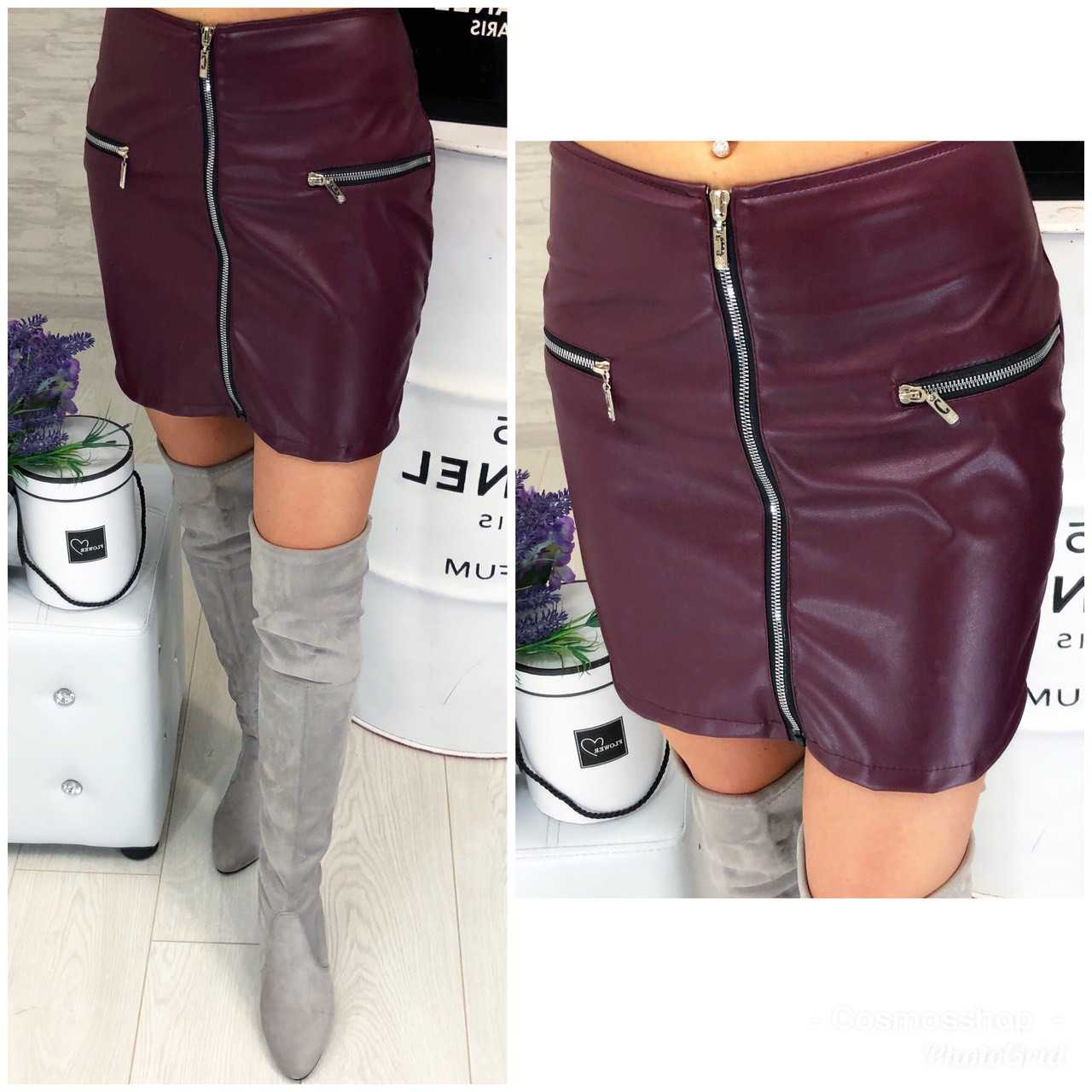 Это синтетические материалы, изготовленные из пластиковых волокон. Качество хорошее, точно имитирует натуральную кожу. Они бывают различной текстуры, самые классические – однотонные черные в виде юбки-карандаш, что модно в этом сезоне.