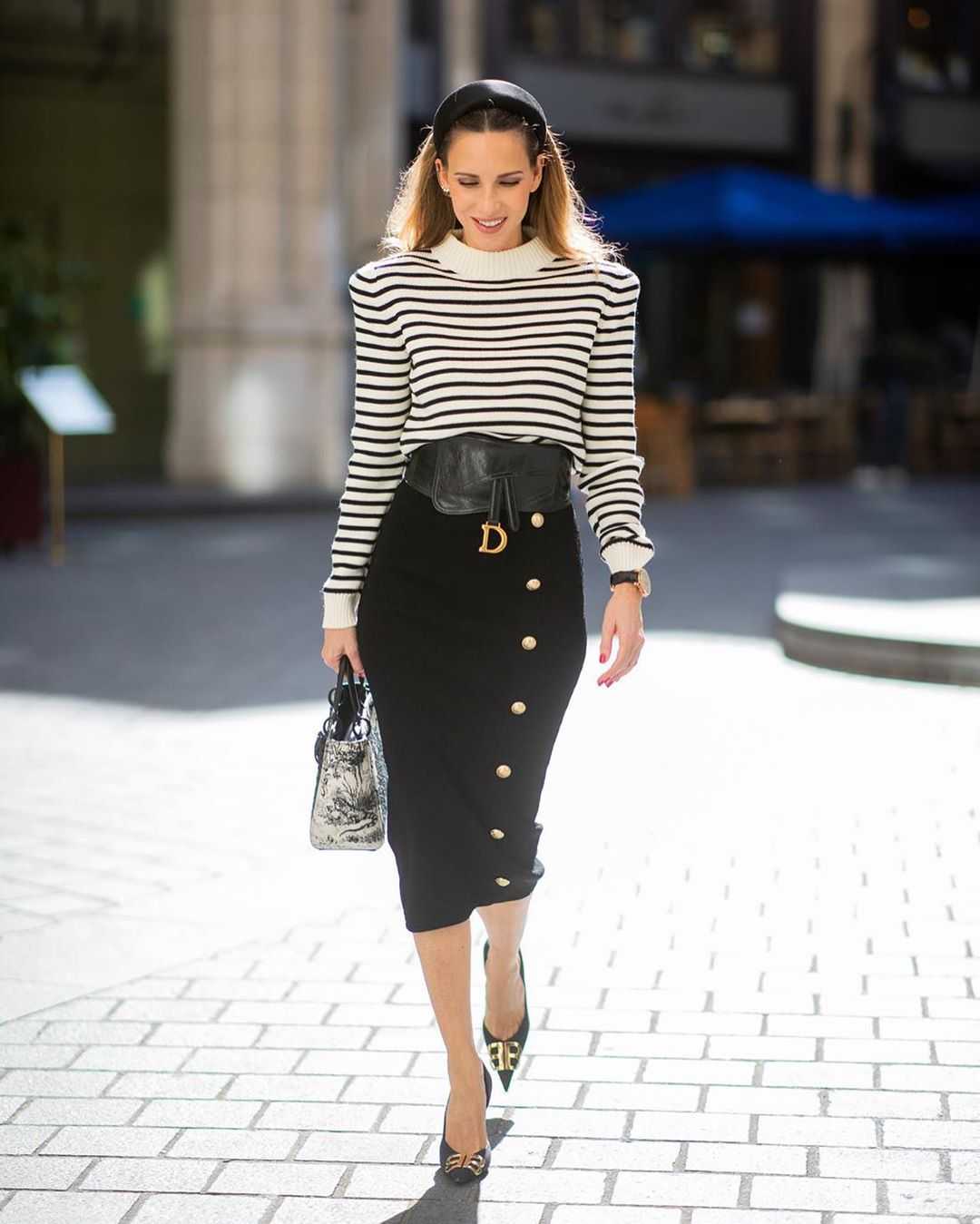 Если вы планируете носить юбку с плиссировкой в офис, то предпочтите не слишком глубокое миди, которое смотрится слишком романтично и впишется не в каждый дресс-код. Предпочтите юбку немного ниже колена, которую можно комбинировать с блузами, топами, жакетами, джемперами и другими вещами из офисно-делового гардероба.