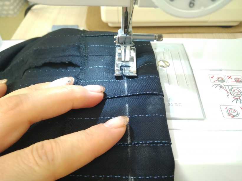 - для работы с круговыми необходимо завернуть глубину складки, затем прострочить и развернуть, а если есть потребность — на лицевой стороне сделать декоративную строчку;